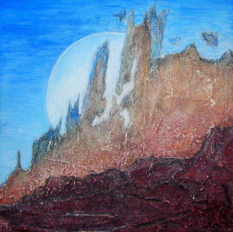 Es entwickelt sich eine Idee, eine Vorstellung, in welcher Richtung es weitergehen könnte. Nun sind der Kopf, der Verstand, das Wissen um Technik bzgl. Räumlichkeit, Perspektive, Farbkomposition usw. gefragt, um die Projektionen und Fantasien zum Ausdruck zu bringen, umzusetzen.